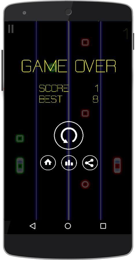 La règle est très simple, nous avons une course à grande vitesse entre 2 voitures sur 2 voies simultanément. Et vous devez contrôler 2 voitures en même temps. (Nous concevons des voitures sur le modèle de Ford Mustang, ou Ferrari quoi que ce soit). Sur le haut, les 2 voitures doivent éviter les blocs carrés et attraper le cercle un. Vous devez vous 2 doigts à appuyer sur l'écran pour changer leur voie. La vitesse de course de deux voitures augmentera lorsque vous obtiendrez un score plus élevé. Ce jeu de course de voitures semble être très difficile. En fait, vous devez tourner à gauche, tourner à droite, attraper le cercle, éviter la boîte carrée, et lorsque vous accélérez, il est si difficile à contrôler.